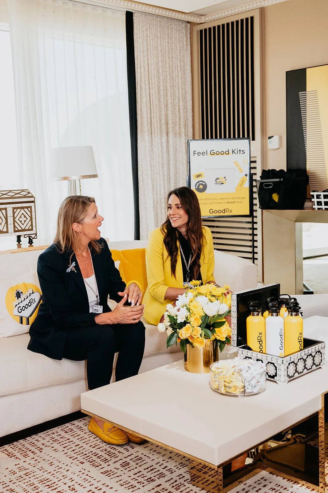 We kicked things off in style with an ultra-glam dinner at the legendary Delilah, setting the tone for a week full of wow-worthy moments. We focused on creating moments that felt immersive and unforgettable — from stage design and high-touch branding (like our custom-built, pharma-themed roulette and craps tables that brought the GoodRx message and solutions to life in a fresh, interactive way) to our premium, fully customizable gifting stations that had guests lining up. Our Topgolf takeover on Level 4 kept the energy high, with yellow-feathered showgirls, a mind-blowing close-up magician, and sweeping views that reminded everyone they were definitely not in a typical conference setting.